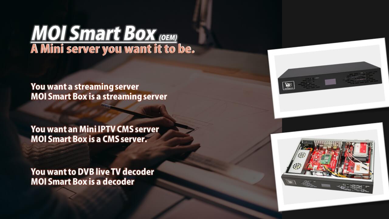 MOI SMART BOX is designed for offering customized IPTV streaming server solution. TBS prepares a Demo Form of the MOI SMART BOX for performance and testing.