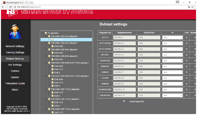 MOI SMART BOX demo form is with Centos 7 system and TBS streaming platform, embedded with many streaming software, like Tvheadend, VDR, MuMuDVB, DVBlast, DVBdate, DVBscan and so on.