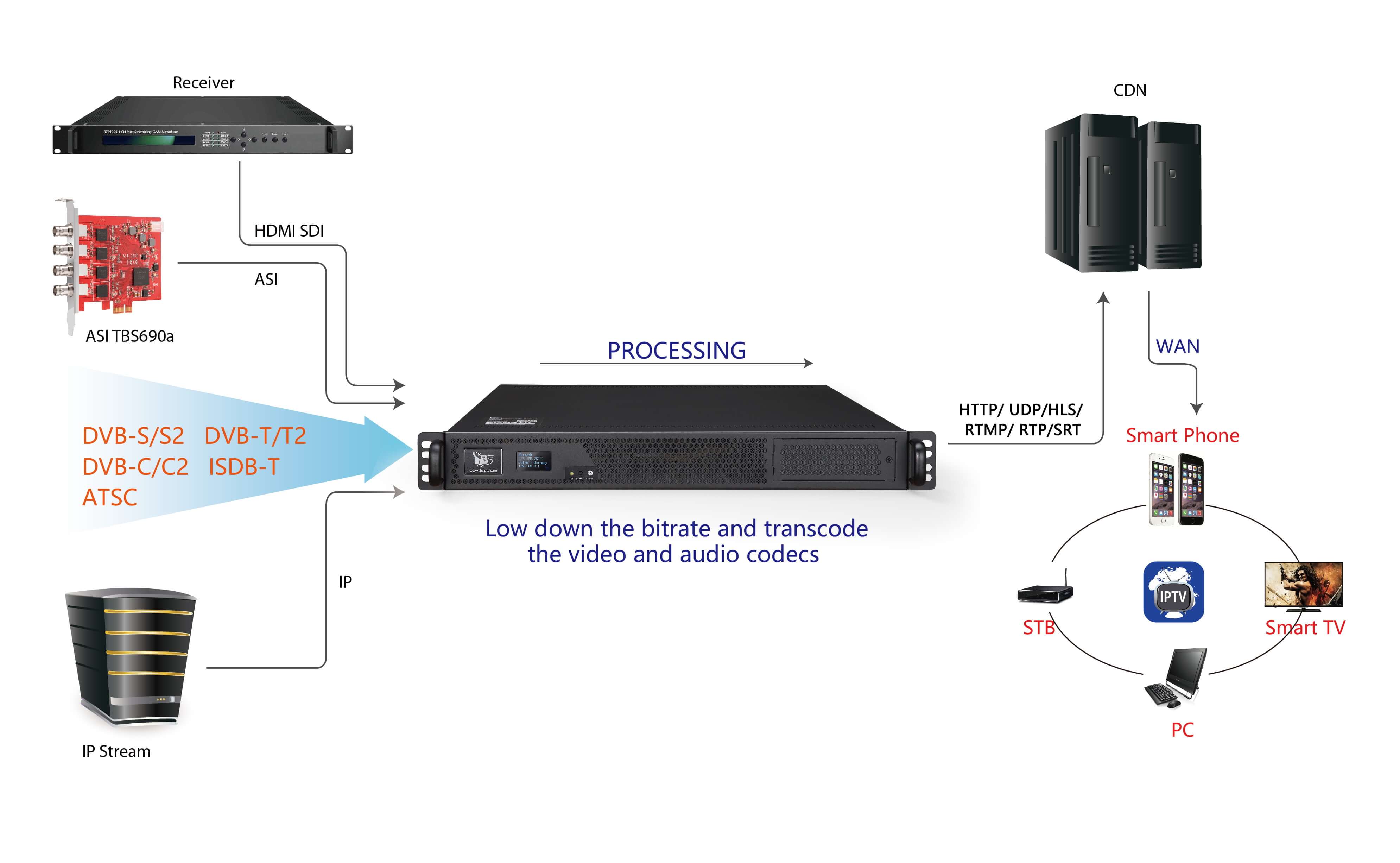 - TBS8510 Pro Multiple inputs H.264/H.265 IPTV Transcoder Data Sheet
