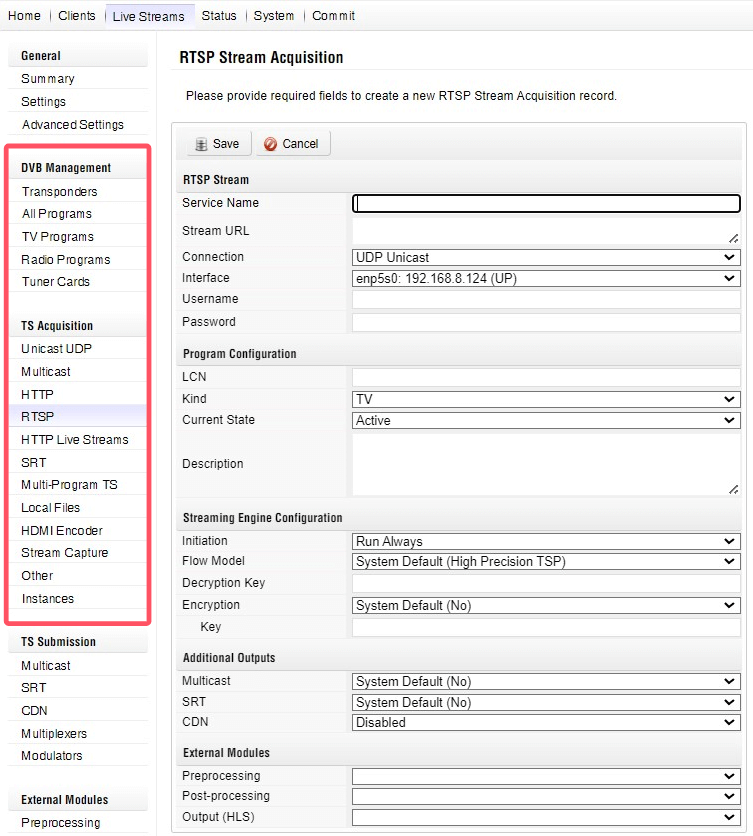 Supports a wide range of inputs and outputs, including multiple protocol IP streams, DVB/ATSC/ISDB-T live TV signals, and HDMI video input. It also offers multiple protocol IP stream outputs. When equipped with a DVB Modulator PCIe card, it can output DVB signals as well.